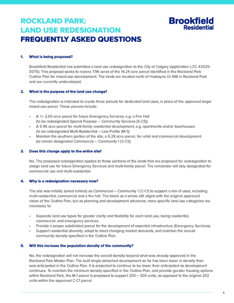 Brookfield Residential would like to share an update regarding a land use redesignation application submitted to the City of Calgary. The application proposes to rezone a portion of the